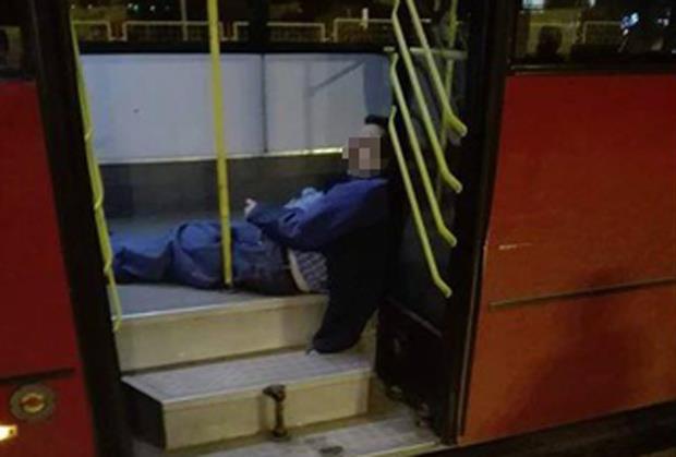 Na fotografiji se vidi čovek razbijenog nosa i u nesvesti, koji sedi na podu autobusa koji liči na beogradski GSP.