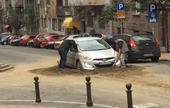 Međutim, ovog sugrađanina zadesio je peh kakav se ne pamti kada je doslovno upao u jednu od beogradskih rupa na kolovozu. Fotografija je na Tviter postavljena juče, ali nema beleški u kojoj se to ulici dogodilo, osim da je u centru, ali je sasvim sigurno da nijedan od vozača ne bi želeo da se nađe na mestu ovog Beograđanina.