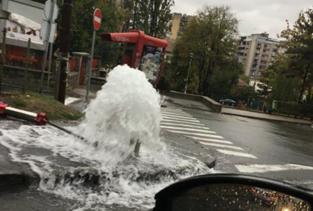 (FOTO) HAOS NA VRAČARU: Pukao hidrant, voda šiklja nasred ulice