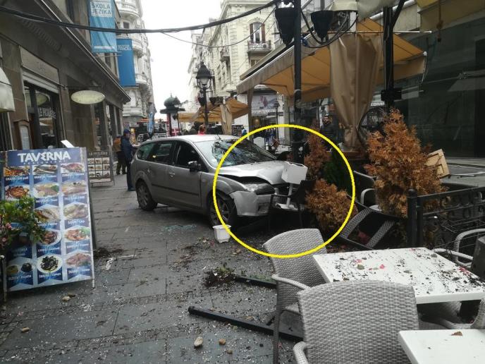 Vozač sivog automobila uleteo u pešačku zonu u Knez Mihailovoj ulici u Beogradu i krenuo da gazi ljude u baštama kafića.