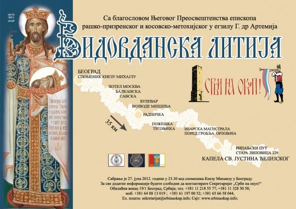 BEOGRAD - Organizatori Vidovdanske Litije, sinoć nešto posle 20 časova, telefonskim putem su od strane nadležne policije Stari grad, dobili zabranu održavanja Litije. Obzirom da je ona prijavljena na vreme, pre dve nedelje, zahtevali smo da pismeno dobijemo rešenje o zabrani. Iz policije je rečeno da će rešenje biti urađeno.