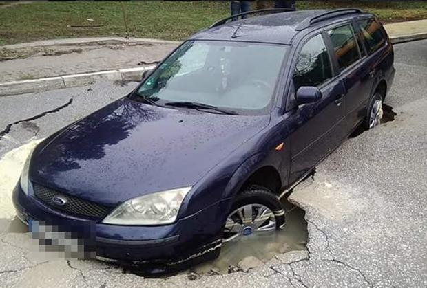 BEOGRAD - Na društvenim mrežama pojavila se u ponedeljak fotografija automobila koji je propao kroz asfalt u beogradskom naselju Dedinje.