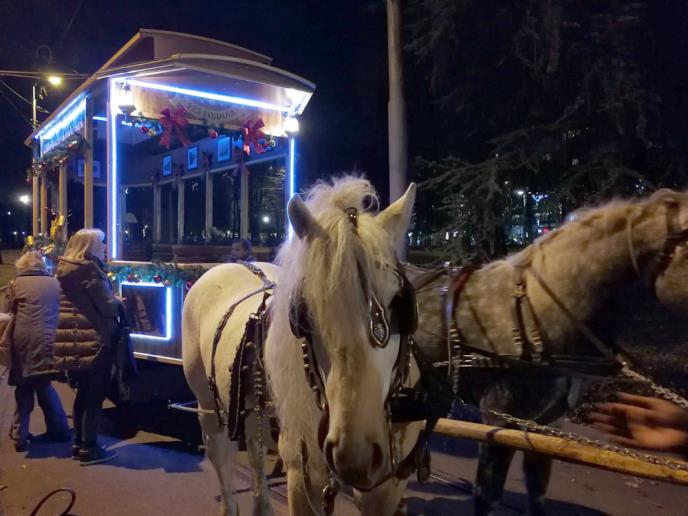 Okićen i osvetljen novogodišnji tramvaj iz kojeg je kočijaš delio slatkiše i bombone posebno je privukao pažnju najmlađih.