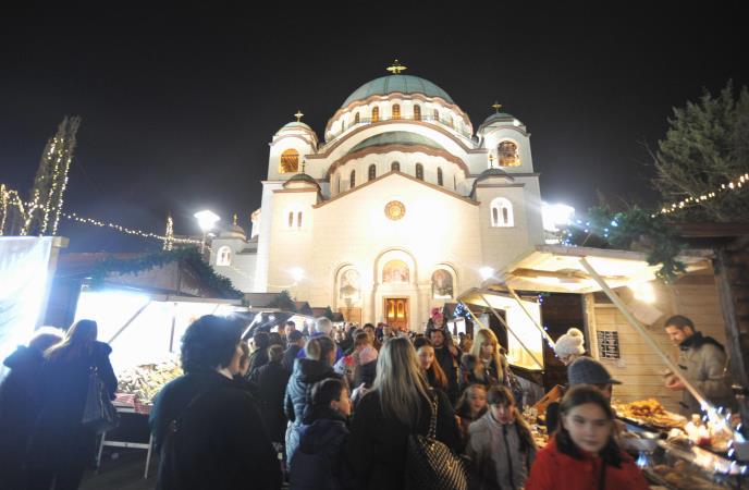 Ispred Hrama Svetog Save postavljeno je 25 kućica u kojima se prodaju suhomesnati proizvodi, slatkiši i ručni rad. "Božićno seoce" biće otvoreno do 28. januara.