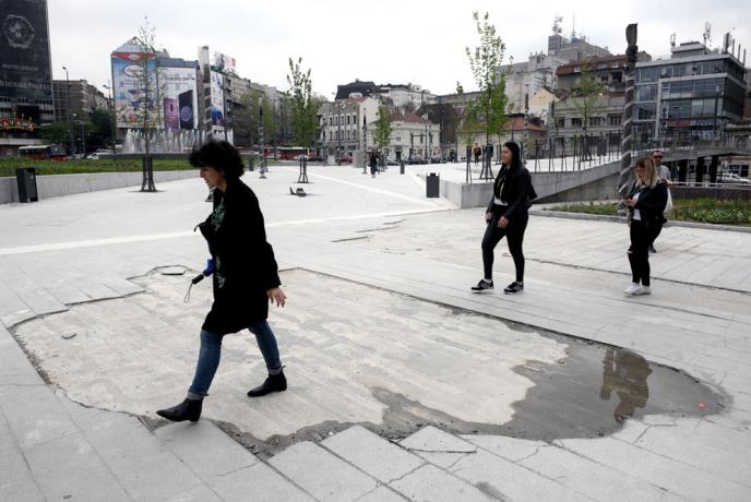 Valjda je kriv investitor, on je trebalo da gleda kakve su ove ploče, da zna šta treba da se uradi. Nije trebalo to da dozvole, pogotovo što je ovo centar grada. Ne mogu da shvatim da su ove pločice uradili ovako.
