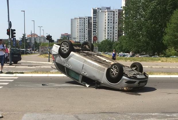 Udes se dogodio na uglu ulica Dušana Vukasovića i Japanske, a vozilo marke "opel" završilo je na krovu.