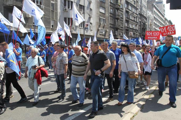 Posle uvodnih govora u centru grada, gde su se obratili predstavnici organizatora - Saveza samostalnih sindikata Srbije(SSSS) i Ujedinjenih granskih sindikata Nezavisnost(UGS), kolona, na čijem je čelu bio i ministar rada Zoran Đorđević, otišla je do Skupštine Srbije i, uz pesmu "Pada vlada", do njene zgrade.