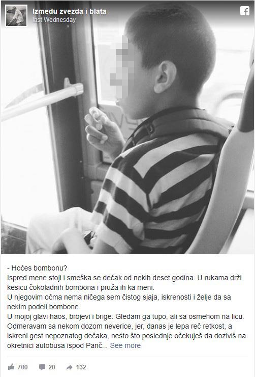 Priča o susretu sa dečakom koji je u ruci imao kesicu bombona se već danima širi društvenim mrežama.