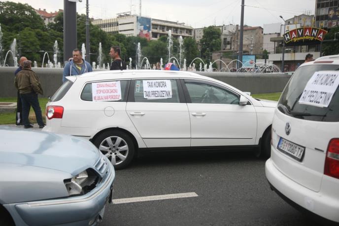 U centru Beograda je rano jutros počeo štrajk taksista okupljenih oko Ugovorne privredne taksi komore Srbije, koji su blokirali prilaze Trgu Slavija i saobraćaj je i dalje obustavljen u okolnim ulicama.