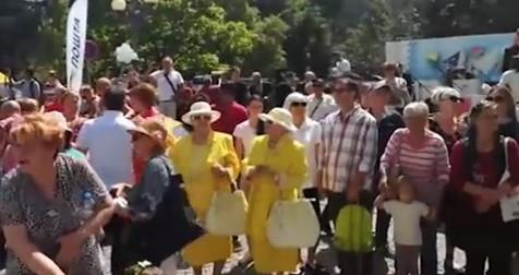 BEOGRAD - Dve bake u žutom bile su prava atrakcija današnjeg kolektivnog venčanja u belom pred Skupštinom grada.
