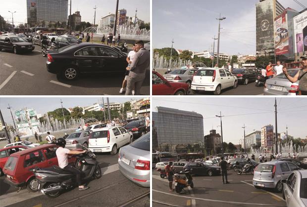 Automobili su stali na Trgu Slavija, stvorene su velike saobraćajane gužve, a svi pravci ka Slaviji bili su blokirani.