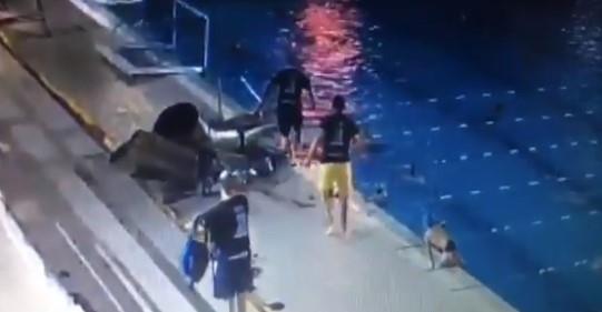 HOROR NA BAZENU 11. APRIL! CEV PALA TIK PORED DECE KOJA SU PLIVALA: Treneri skočili da ih spasavaju, prolomili se vrisci (UZNEMIRUJUĆI VIDEO)