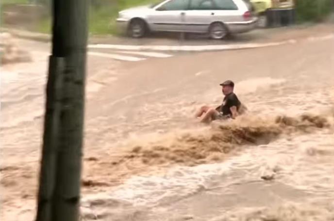 Reke vode slivale su se niz ulice u sredu kada se obilna kiša sručila na delove Beograda, a koje su razmere ovih nepogoda bile najbolje pokazuje snimak na kome je jednog muškarca potpuno odnela voda na Banovom brdu.