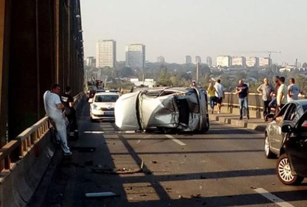 Vozač automobila koji je jutros oko 8.30 vozio preko Pančevačkog mosta, usled još nepoznatih okolnosti, izgubio je kontrolu na vozilom i prevrnuo se, a srećom povređenih u saobraćajnoj nezgodi nije bilo.