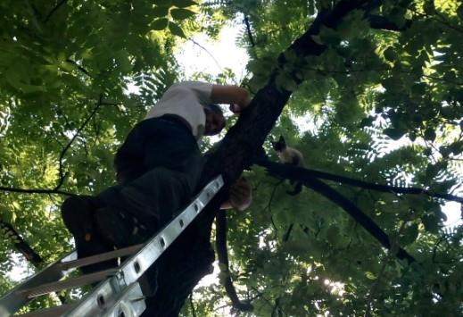 Na fotografijama se vidi kako izvesni Nenad spasava mačka Boleta! Hrabrom Nenadu nije smetala visina pa je pohitao da spase mačka koji se zavukao duboko u krošnju drveta i odatle mjaukom dozivao u pomoć.