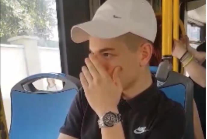 Naime, dečko je sve vreme sedeo na prvom sedištu, nije želeo da se pomeri i stavio je ruku na lice kako mu se ne bi otkrio identitet, navodi Espreso.co.rs.