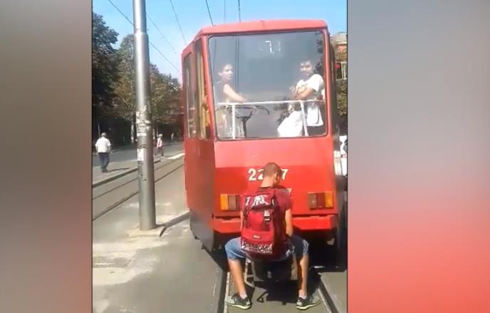 Jedan mladić mogao je ozbiljno da strada kada je seo na zadnji deo tramvaja broj 7 i tako se vozio nekoliko stotina metara.