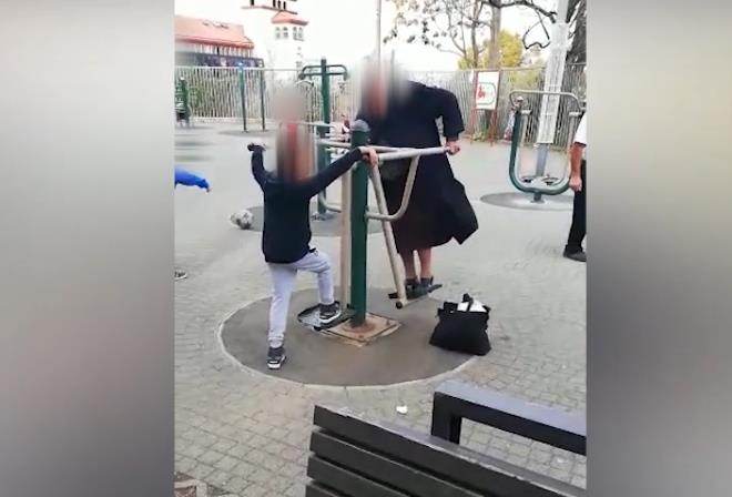 Baku i unuka kako se ljuljaju zajedno i uživaju. Baka je na zemlju spustila ceger kao klinka školsku torbu pored ljuljaške i predivno se zabavila sa svojim unukom.