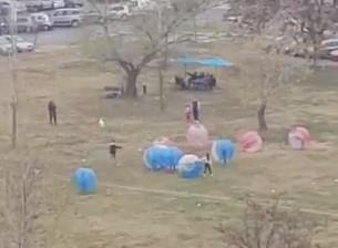 LUDA ZABAVA JUTROS U BLOKOVIMA U NOVOM BEOGRADU: Pogledajte kako igraju fudbal u balonima! (VIDEO)