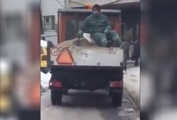 Snimak je njegovim pratiocima bio zanimljiv zbog načina na koji je ovaj radnik posipao so, lopaticom i to iz kamiona.