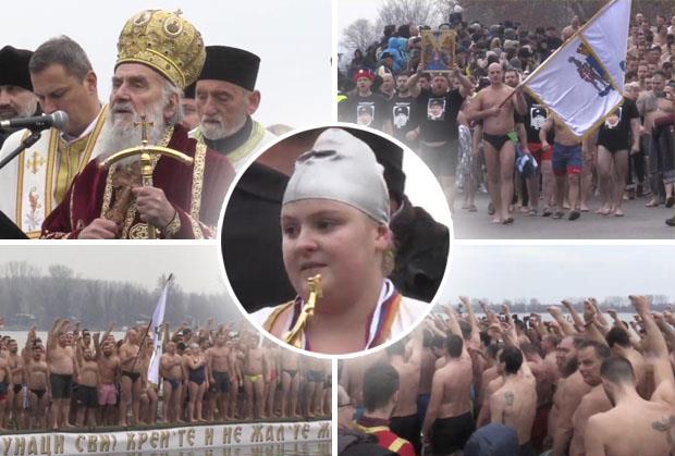 Pre nego što su skočili u ledeni Dunav blagosiljao ih je patrijarh srpski Irinej.