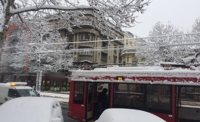 Zbog snega je došlo je do izmena i skraćenja trasa na nekoliko autobuskih linija, trolejbuskih linija, a jedna trola koja saobraćaja na liniji 21 izgleda da je jutros "zalutala" u Bulevaru kralja Aleksandra, gde inače i ne saobraća.