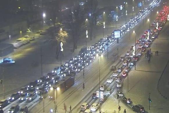 Sneg koji pada već nekoliko sati doprineo je stvaranju gužvi i kilometarskih kolona, budući da veliki broj vozila stoji u redovima koji se protežu od Bloka 29 do Mostarske petlje, kao i od Autokomande do Dušanovca.
