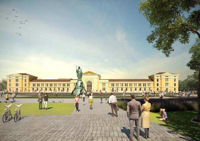 „Autori nastoje da stvore centralni prostor u težištu istorijskog i modernog grada na priobalju. Kombinovana kompozicija velikog Savskog trga objedinjuje zeleni prsten kružnog bulevara koje se nastavlja u koncentričnim prstenovima zelenih površina i, radijalnu mrežu produženja okolnih ulica, usmeravajući prilaze i poglede ka središtu trga koji određuje memorijalna platforma u obliku postamenta duž zgrade budućeg muzeja”, objašnjava Folić, naglašavajući da tom kompozicijom trg dobija oblik amfiteatra, koji će postati najveće socijalno i istorijsko pozorište u gradu.