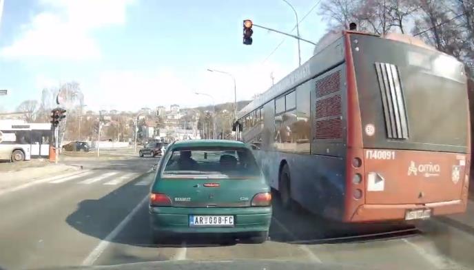 Opasna scena snimljena je na begradskim ulicama, a akter je vozilo GSP na linij 47.