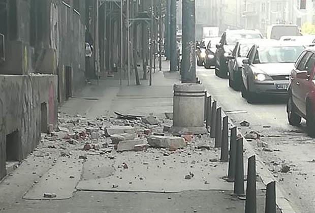 Delovi fasade pali su na trotoar na kojem na sreću u tom trenutku nije bilo nikog, a deo građevinskog materijala pao je i na kolovoz jedne od najprometnijih ulica.