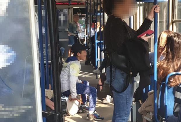 U tramvaju broj 6 danas je bilo pravo malo veselje. Dva dečaka su svirala - na bubnju i trubi.