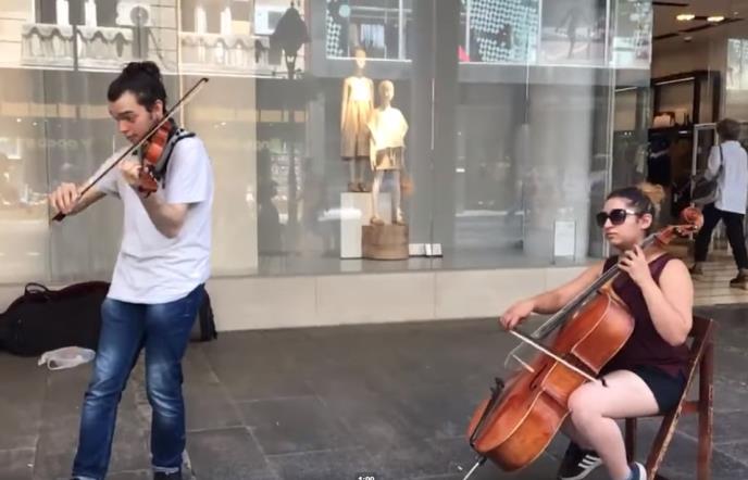 Troje mladih ljudi u Knez Mihailovoj ulici sviraju klasičnu muziku, i to rade odlično, ali su zbog svog talenta "popili" kaznu.