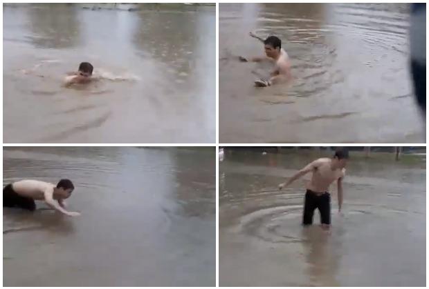 Tako je ovaj mladić kod Železnićle stanice ušao u vodu nasred ulice i zaplivao !