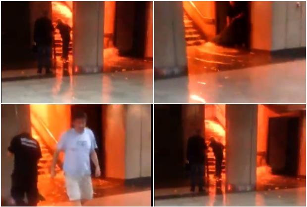 Na snimku, objavljenom na društvenoj mreži Tviter, može se videti da se niz stepenice slivao pravi vodopad.