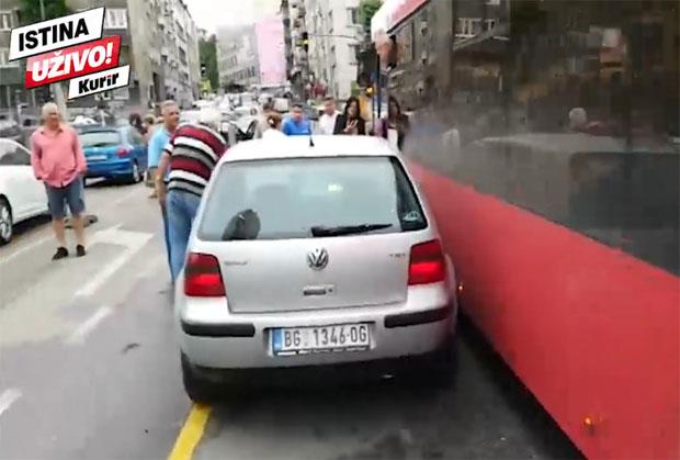 ČUKANJE U STARINE NOVAKA: Sudar autobusa i automobila napravio manju gužvu u centru Beograda (KURIR TV)
