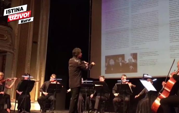 Ispred glavnog ulaza zgrade Narodnog pozorišta u 20.30 počeo je gala koncert Opere u kojem učestvuju solisti, hor i orkestar te ustanove.