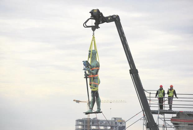 Inače, skidanje statue bio je osetljiv i zahtevan poduhvat. Uz pomoć sajli i posebnih mašina Pobednik je odvojen sa 13 metara visokog postolja, a spuštanje je trajalo nekoliko minuta.
