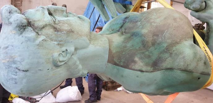 Bronzana statua teška 1,5 tona spuštena je s postolja na Kalemegdanu prvi put posle 91 godinu i odneta u Smederevo, gde će u naredna četiri meseca biti na restauraciji u ateljeu vajara Zorana Kuzmanovića.
