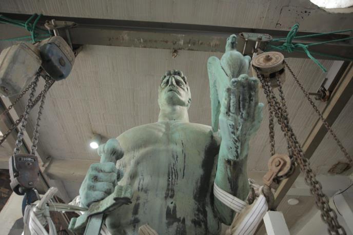 Skulptura čuvenog beogradskog "Pobednika" uređuje se u ateljeu vajara Zorana Kuzmanovića u Smederevu, a građani mogu da vide kako poznata bronzana figura dobija stari sjaj.
