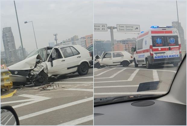 Kako javljaju čitaoci Kurira, udes se dogodio kada se automobil marke "golf" pri punoj brzini zakucao betonski stub kod skretanja za Sava Centar.