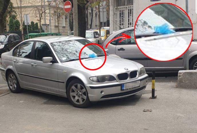 Naime, neko je ovom bahatom vozaču na šoferki ostavio kesicu psećeg izmeta! Možda će ga ova "poruka" naučiti da sledeći put povede računa gde ostavlja svoje vozilo.
