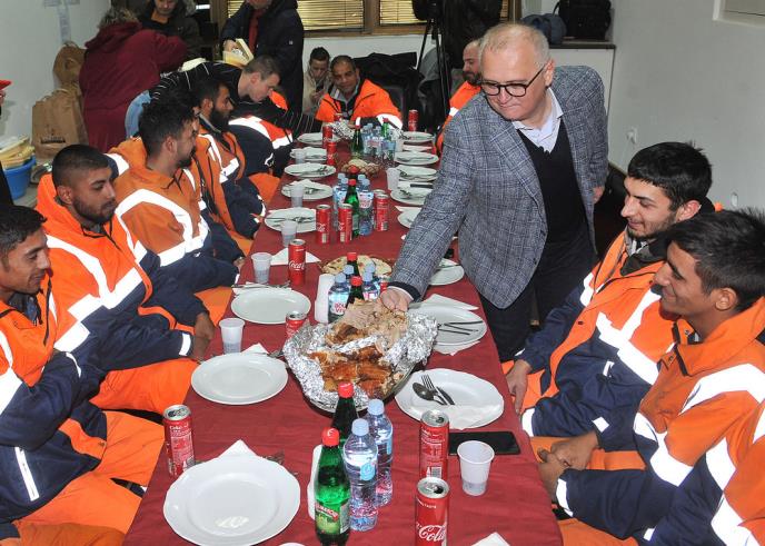 Zamenik gradonačelnika je s radnicima "Gradske čistoće" večerao zajedno sa direktorom tog preduzeća Markom Popadićem.