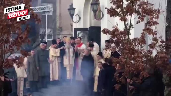 Ispred hrama se okupio veliki broj pravoslavnih vernika, a patrijarh je osveštao badnjak.