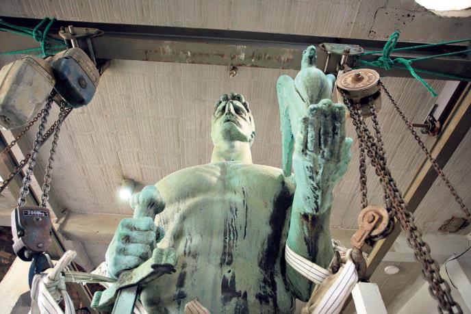 Magacioner na deponiji je vrlo stručno, uspešnije od najboljeg dželata, obesio „Pobednika” debelim užetom o jednu gredu, pa je tada i nastala slika koju vidite u prilogu. Nešto kasnije, pomenuti magacioner je razoružao „Pobednika”, radi bezbednosti, te mač, težak osamdeset kilograma, skinuo sa spomenika i sklonio u ćošak otpada.
