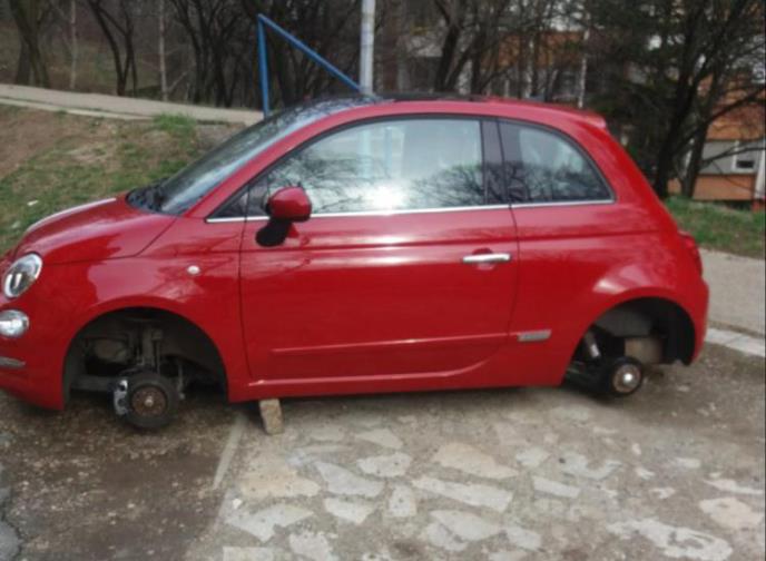 Lopovi su u noći između četvrtka i petka u naselju Medaković skinuli sva četiiri točka sa automobila "fijat 500".