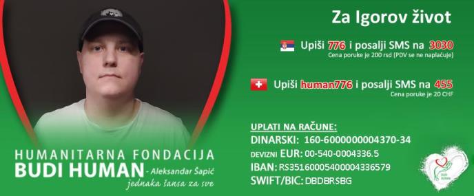 Igor je mlad momak koji se uspešno upisao na budžet Matematičkog fakulteta Univerziteta u Beogradu. Na žalost, zbog bolesti je svoj status na fakultetu stavio u stanje mirovanja, jer mu je u martu 2019. godine dijagnostifikovan agresivni krupnoćelijski B limfom bogat T ćelijama, zbog čega je odmah uključen u lečenje u KBC Srbija na Klinici za hematologiju, odeljenje limfoma.