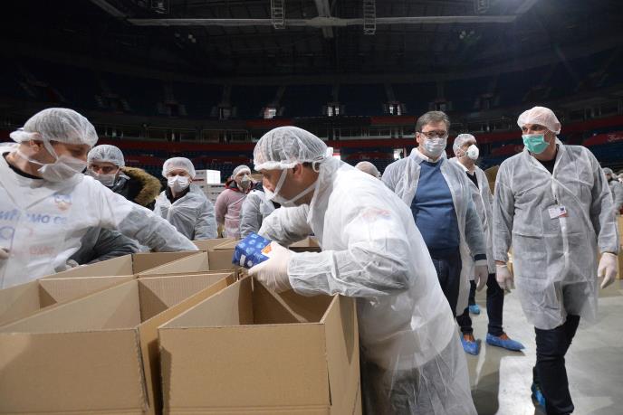 Pakovanje paketa za penzionere u Štark areni biće završeno danas do 12 sati kada će početi njeno čišćenje i dezinfekcija, a sutra ujutru hala će biti predata vojsci kako bi bila pretvorena u privremenu bolnicu za lečenje zaraženih korona virusom.