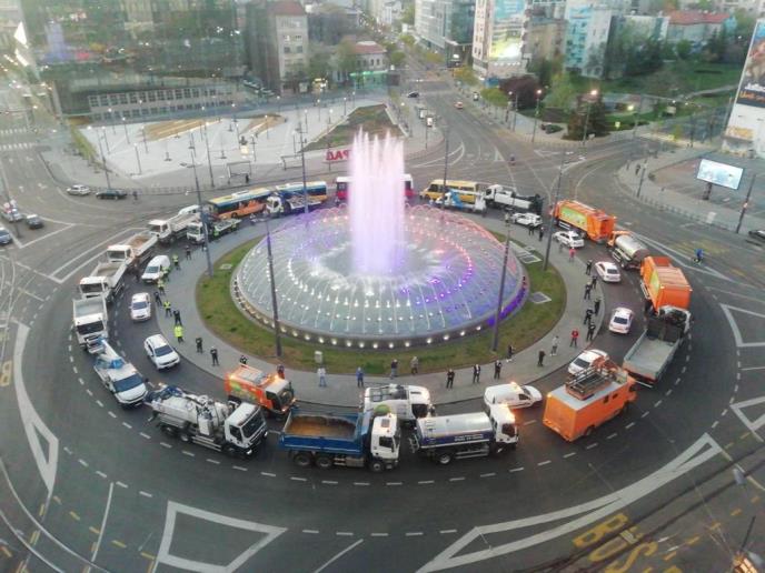 BEOGRAD - Sa beogradskog trga Slavija večeras oko 19.30 zaorio se aplauz predstavnika gradskih komunalnih preduzeća, koji su tu došli svojim radnim mašinama, u znak podrške lekarima i medicinskim sestrama u borbi protiv virusa korona.