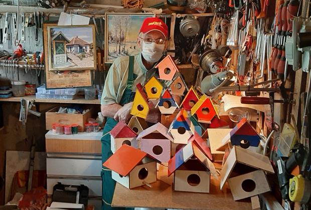 Miloš Miško Miletić (68), penzioner iz beogradskog naselja Konjarnik, napravio je 60 kućica za ptice za 52 dana vanredenog stanja i kućne izolacije zbog koronavirusa.