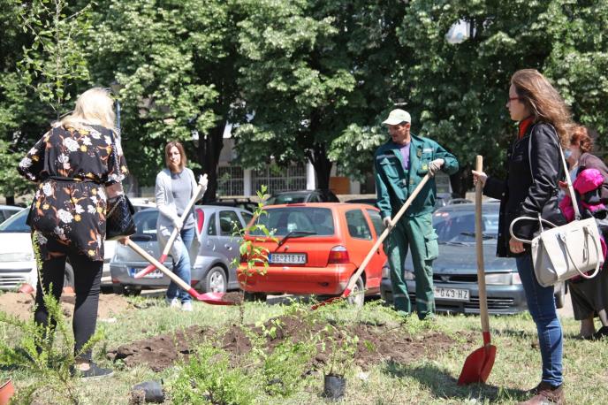 Sedam platana posađeno je na prostoru ispred zgrade, a Zelenilo je obezbedilo i sadnju dva žbuna za dva kućna ljubimca koja su poginula sa svojim vlasnicima.
